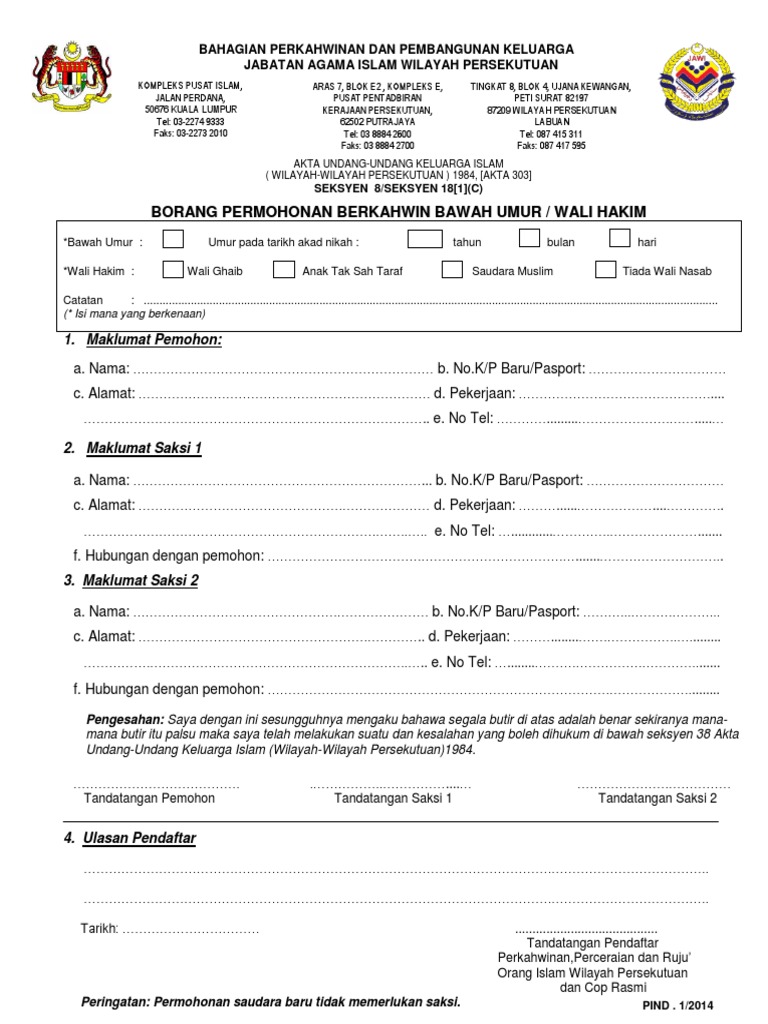 Borang Permohonan Berkahwin Bawah Umur Atau Wali Hakim Dicetak Menggunakan Kertas A4 Berwarna Putih Pdf