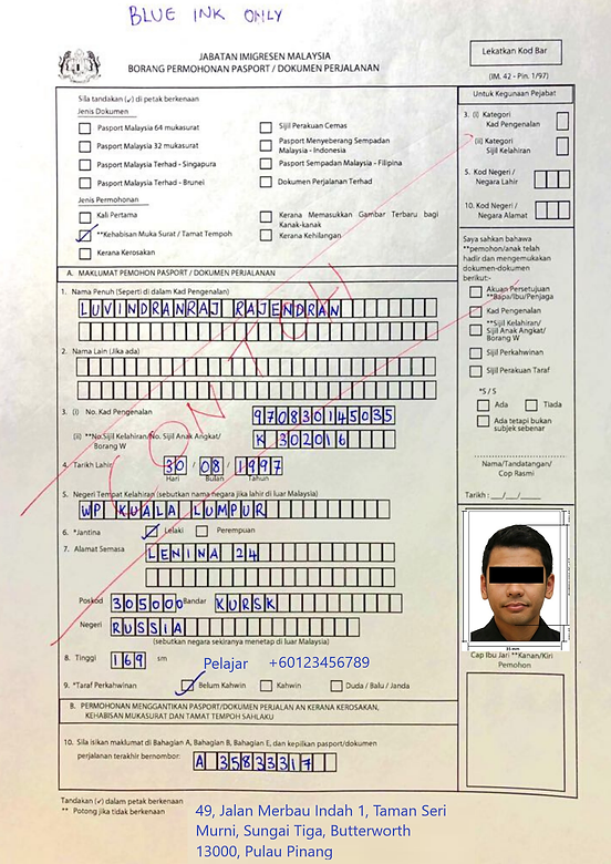 Borang Permohonan Pasport Malaysia untuk Dewasa.