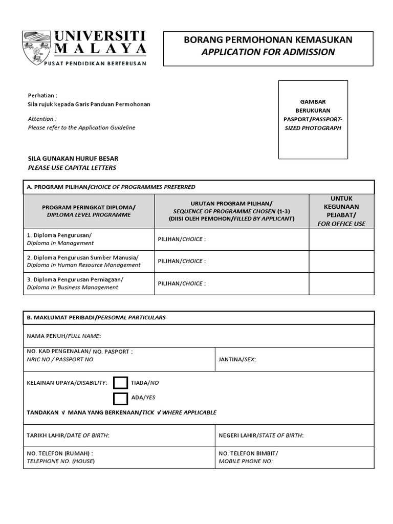 Fillable Online Borang Permohonan Application Form Myum University Of Malaya Fax Email Print Pdffiller